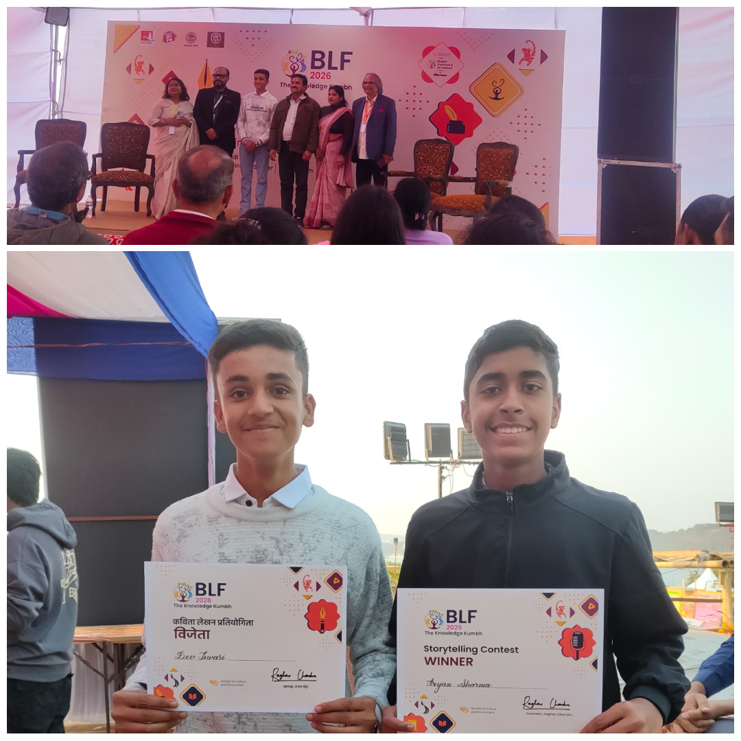 It is a moment of immense pride and honour for Mithi Gobindram Public School to share that the three students were selected in the competitive contests of BLF (Bhopal Literature Festival) held on 9th January at Bharat Bhawan collaborated with M. P school of Drama.